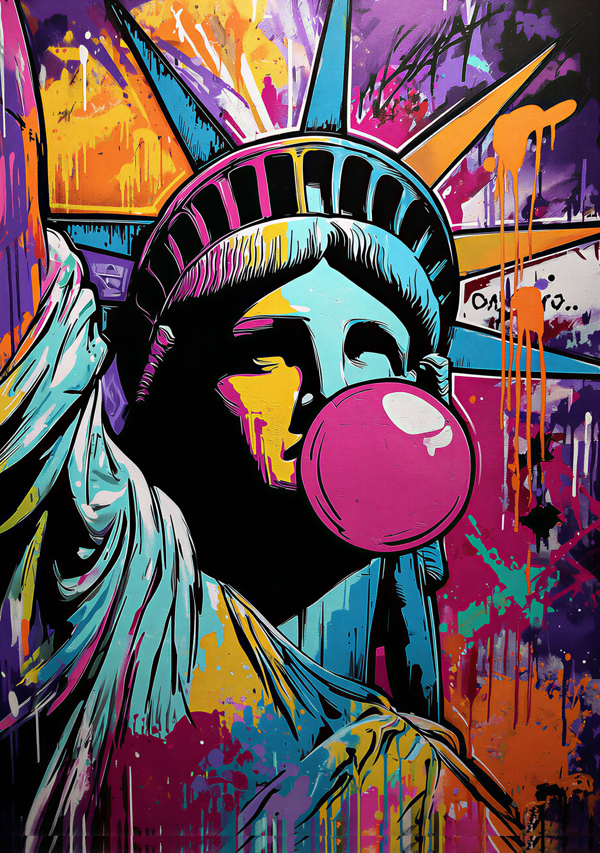 A monument reimagined with a playful touch. The Statue of Liberty sheds its seriousness, blows a bubble, and embraces a freer, cooler style that's impossible to overlook.