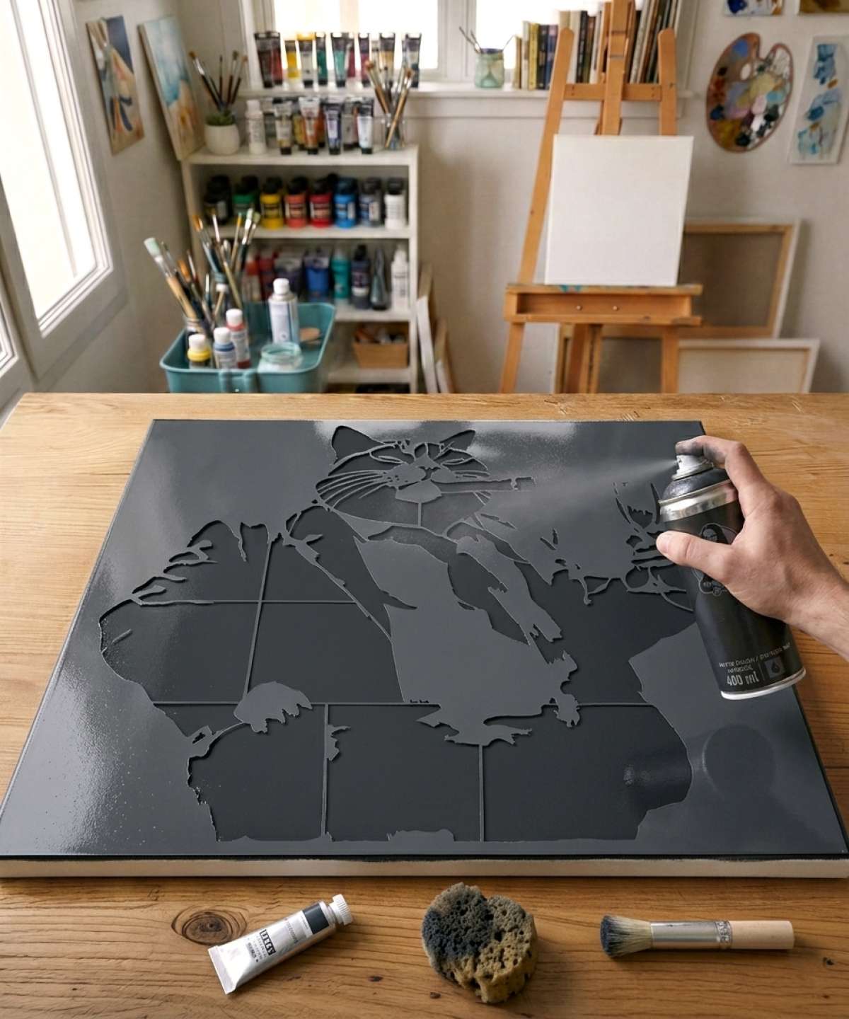 En la mayoría de los casos, no es necesario limpiar sus plantillas: con la pintura en spray, la capa es muy fina y no altera el resultado. Por lo tanto, pueden reutilizarse tal cual, sin problema.Para pinturas más espesas (espátula, acrílico muy cargado), una limpieza rápida con agua tibia o alcohol evita que la plantilla se ensucie.