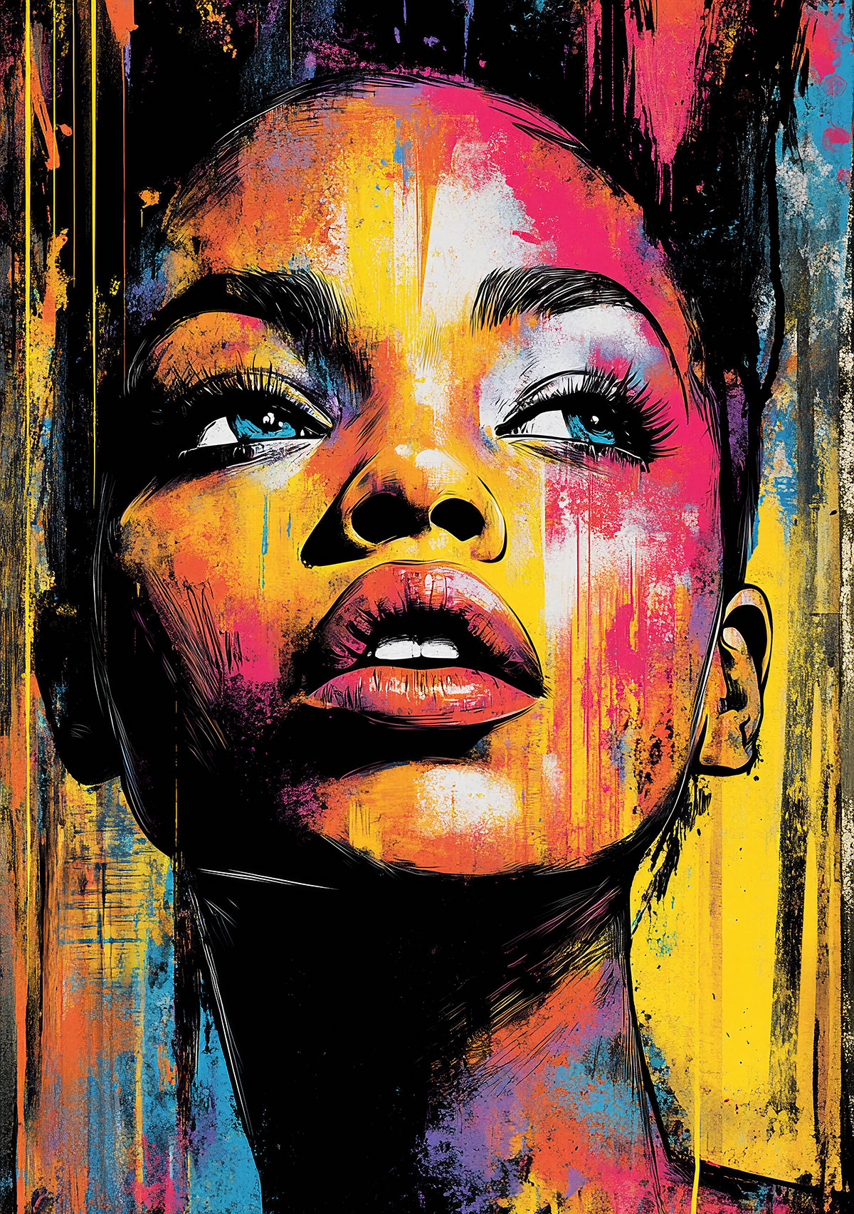 Sur mur, toile ou tout autre support, ce pochoir fonctionne aussi bien en monochrome qu'avec des jeux de couleurs contrastées. Il trouve sa place dans des compositions street art, des portraits pop ou des créations plus graphiques. Le format vertical s'adapte aux espaces étroits et permet de créer des séries de portraits. Acrylique, bombe ou encre, chaque technique révèle différemment les nuances entre les zones de passage et les contours nets.